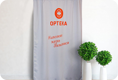 Обычно логотип располагают на расстоянии 130-160 см от нижнего края шторы, таким образом он будет находиться на уровне взгляда человека среднего роста.