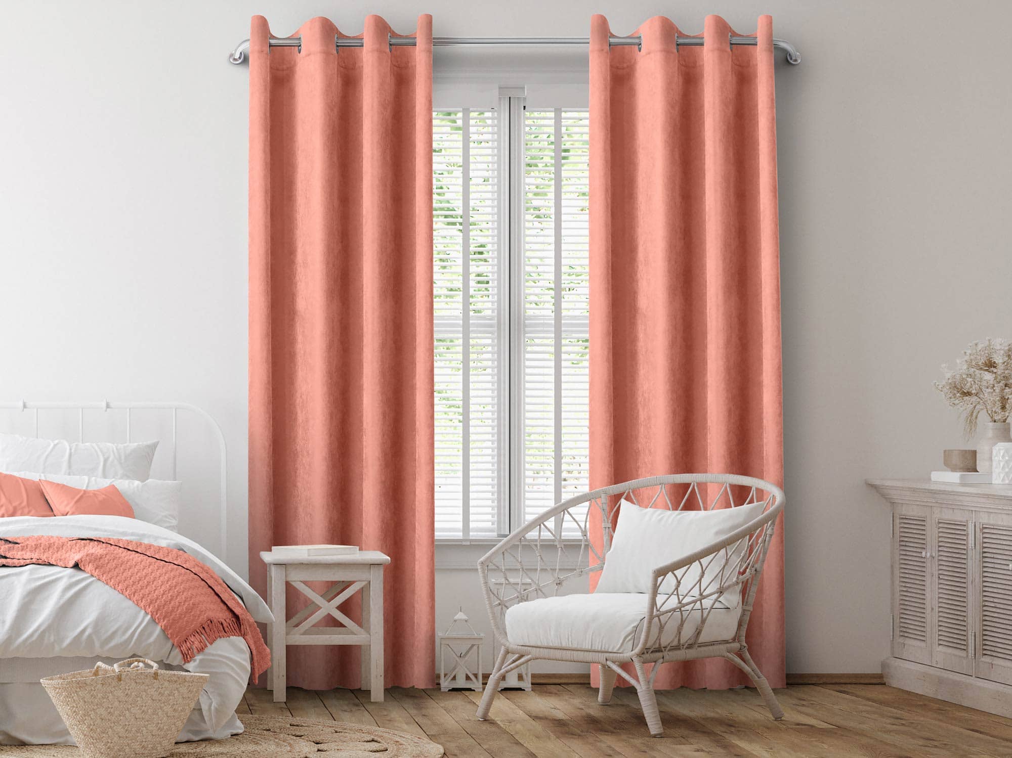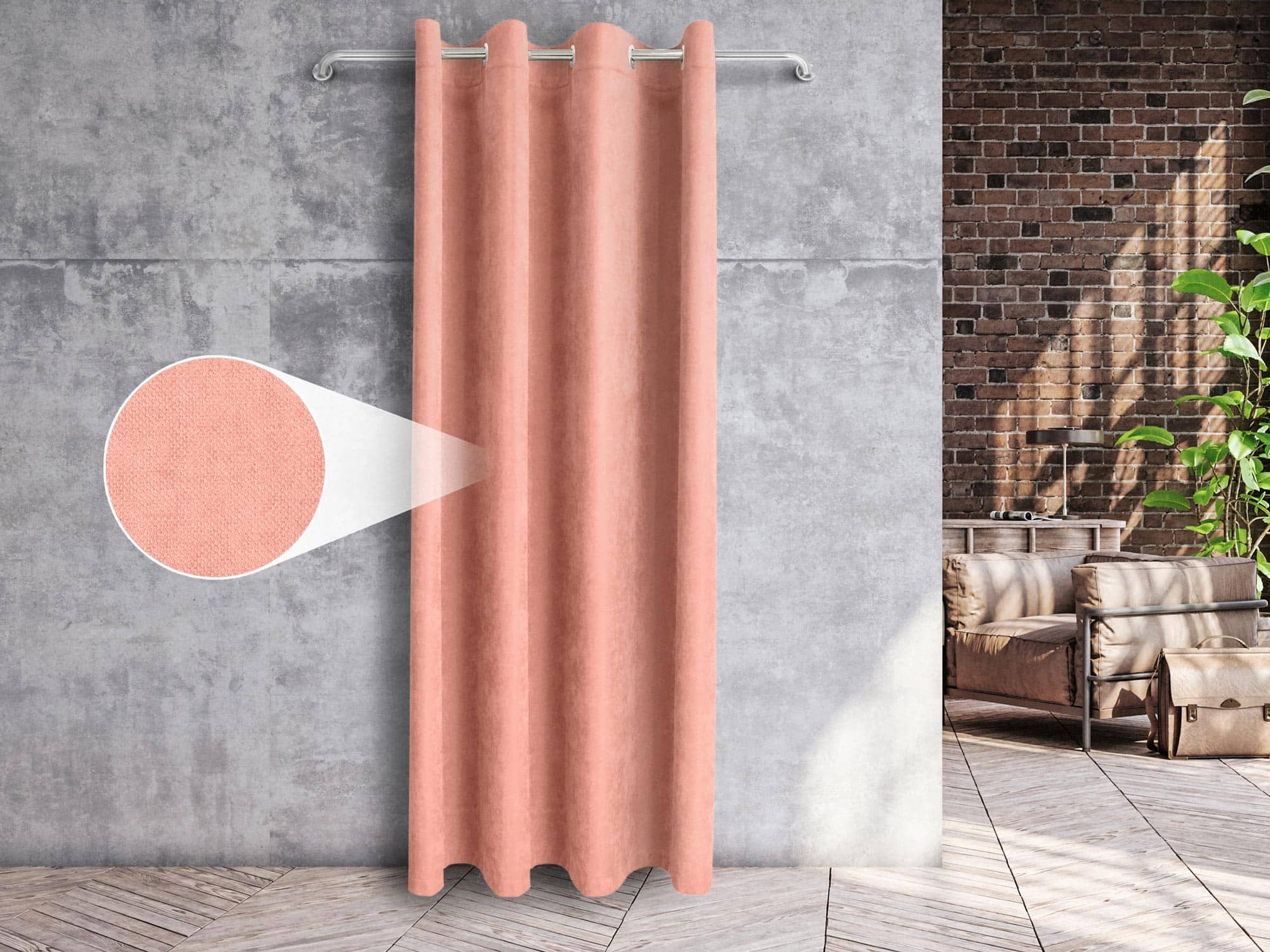 Шторы выполнены из плотной ткани Канвас, представляющей собой 100% полиэстер. Благодаря велюровому плетению нитей материал имеет мягкую бархатистую структуру. Полотно качественно окрашено, не линяет после стирки, отличается прочностью и износостойкостью.