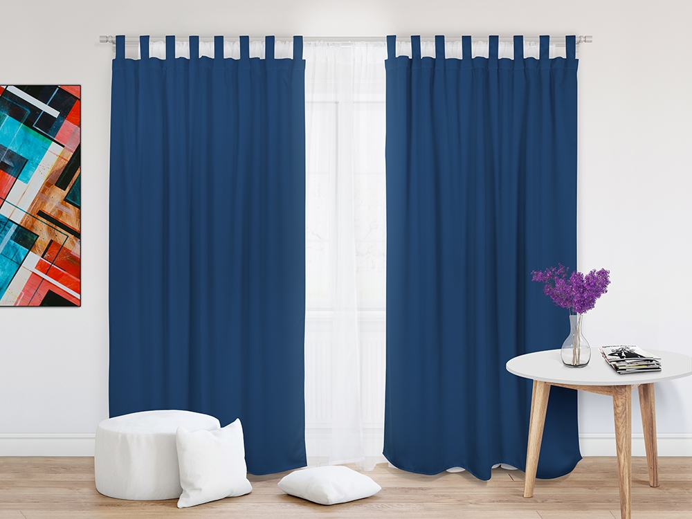 Шторы Премиум темно-синие на петлях на липучках