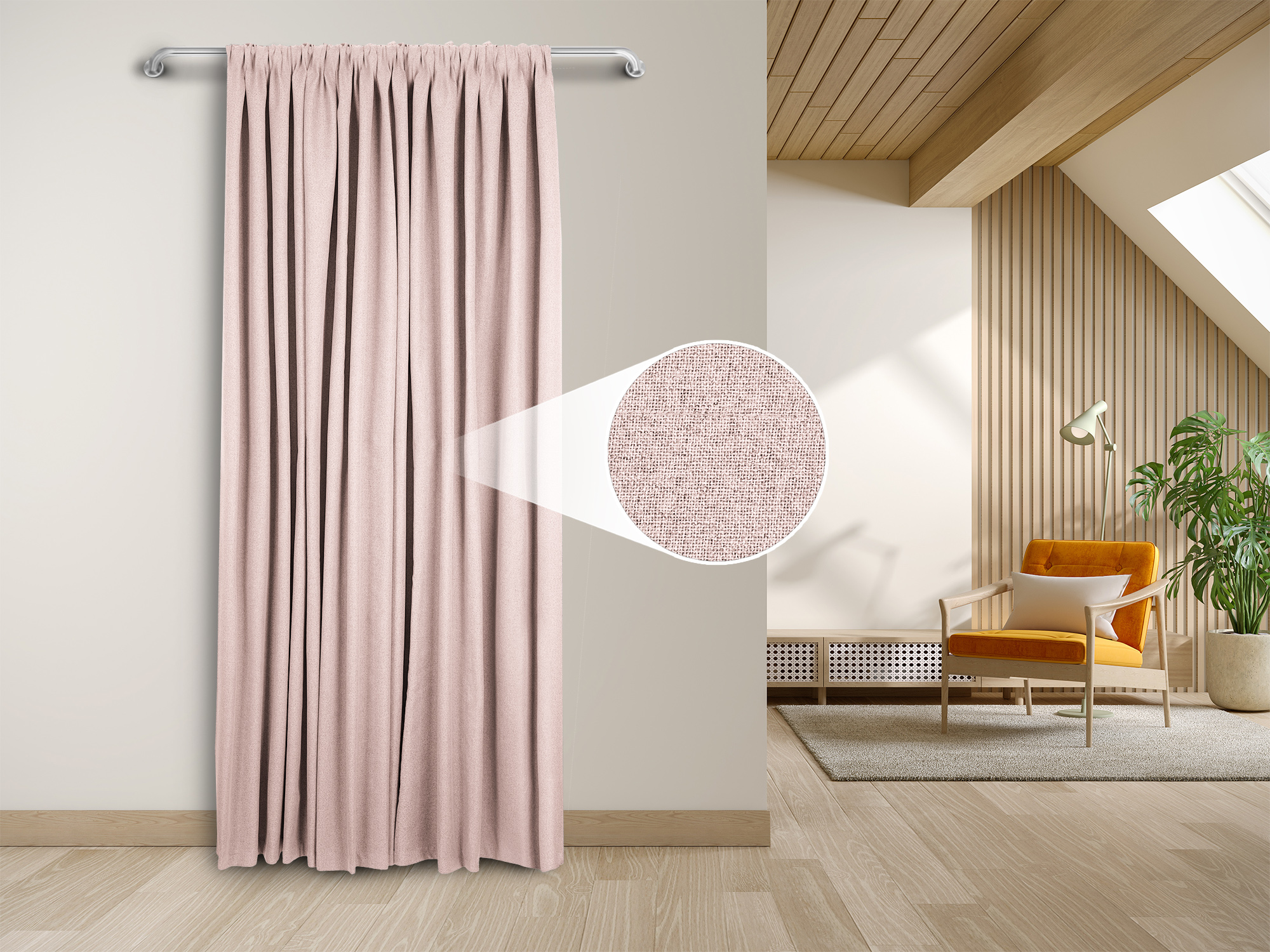 Шторы просты в обслуживании: достаточно деликатной стирки при 30°C. Ширина рулона 300 см позволяет создавать портьеры любой высоты, что делает материал максимально удобным для реализации любых дизайнерских решений.