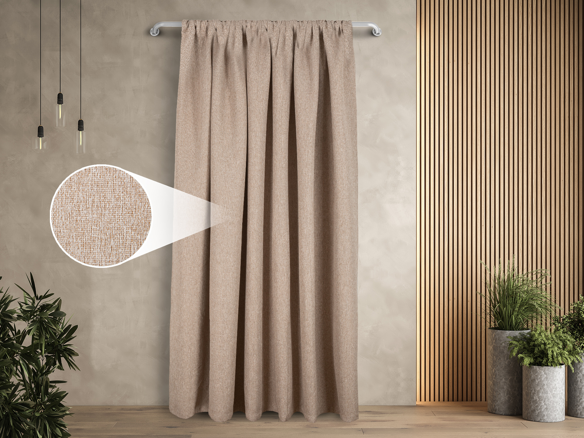 Штора «Димаут рогожка» представляет собой современное решение премиум-класса, выполненное из фактурного материала с текстурой рогожки. Материал разработан с учётом высоких требований к функциональности и эстетике.
