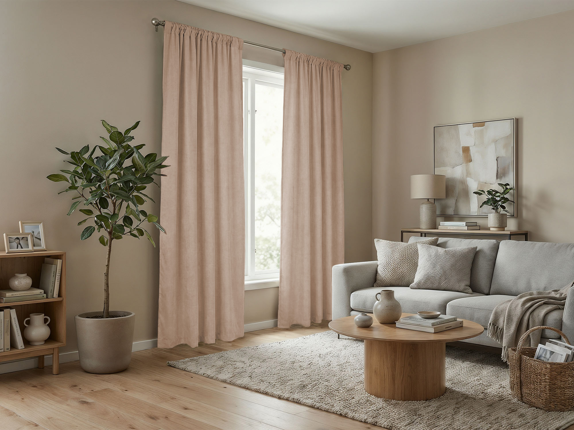 Шторы Микровелюр изготовлены из матовой ткани с деликатным рельефом, напоминающим натуральный нубук. Материал отличается приятной текстурой и оптимальной плотностью, что делает его универсальным решением для оформления как жилых помещений, так и коммерческих пространств.