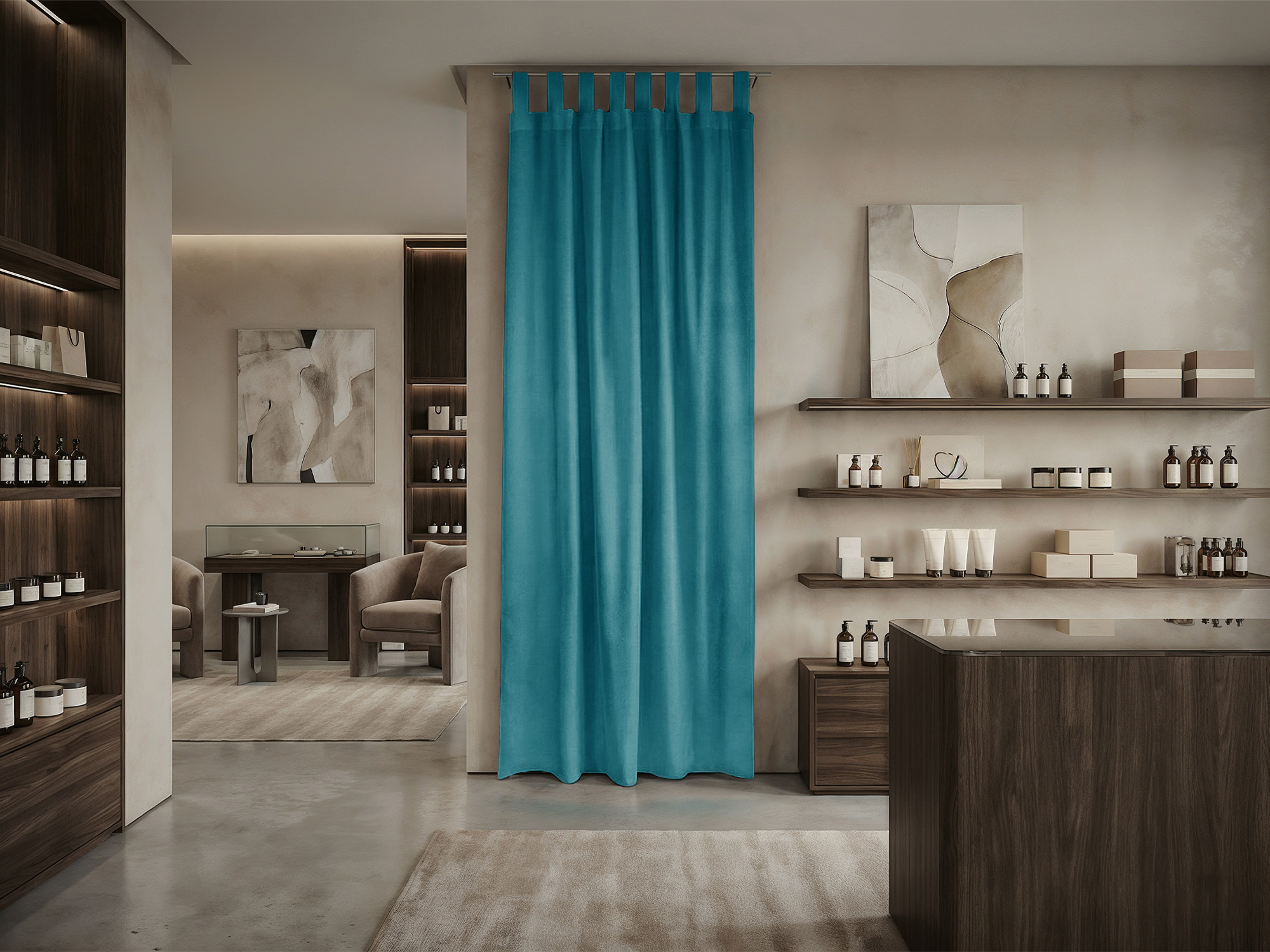 Шторы Микровелюр изготовлены из матовой ткани с деликатным рельефом, напоминающим натуральный нубук. Материал отличается приятной текстурой и оптимальной плотностью, что делает его универсальным решением для оформления как жилых помещений, так и коммерческих пространств.