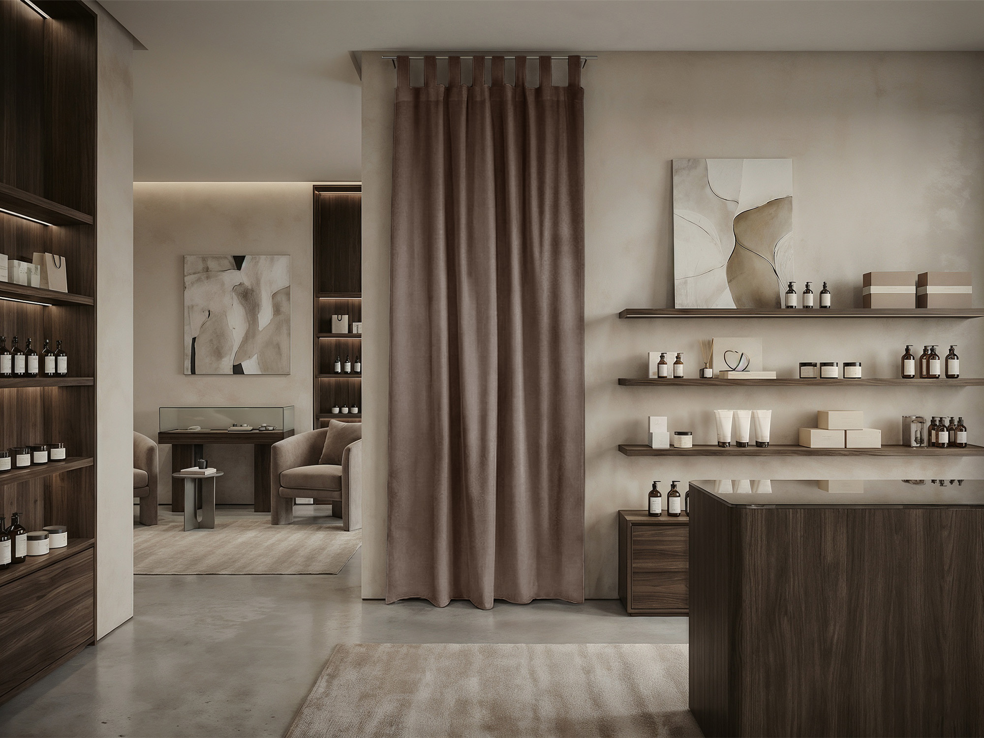 При расчете размера шторы для примерочной мы советуем руководствоваться следующими правилами. Ширина шторы: нужно к ширине проема прибавить 30-50% для того, чтобы штора в закрытом состоянии красиво драпировалась. Длина шторы: нужно померить расстояние от штанги, к которой крепится штора, до пола и вычесть 10-30 см (это высота, на которой штора будет находится от пола).