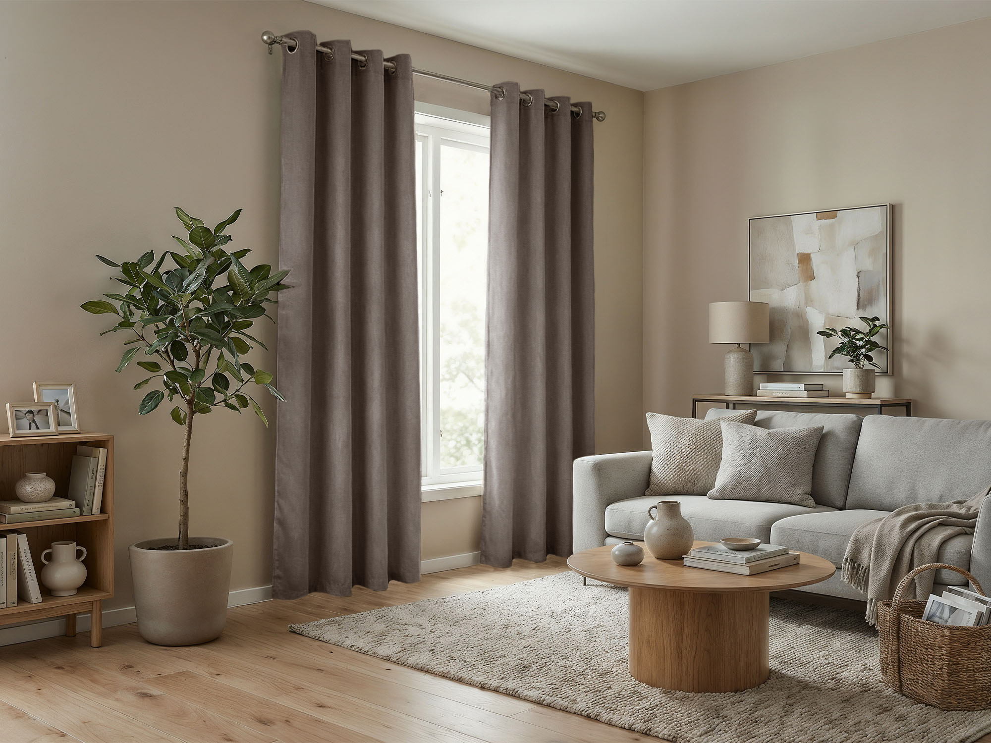 Шторы Микровелюр изготовлены из матовой ткани с деликатным рельефом, напоминающим натуральный нубук. Материал отличается приятной текстурой и оптимальной плотностью, что делает его универсальным решением для оформления как жилых помещений, так и коммерческих пространств.