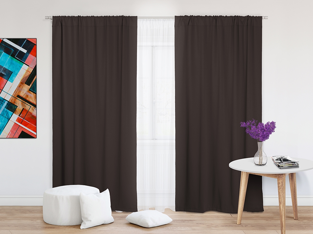 Однотонные шторы производятся из блэкаута прокрашенного c двух сторон промышленным способом. Цветовая гамма состоит из стандартных 14 цветов.