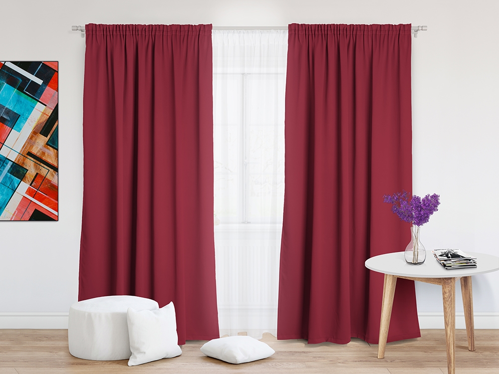Шторы Премиум красные на тесьме