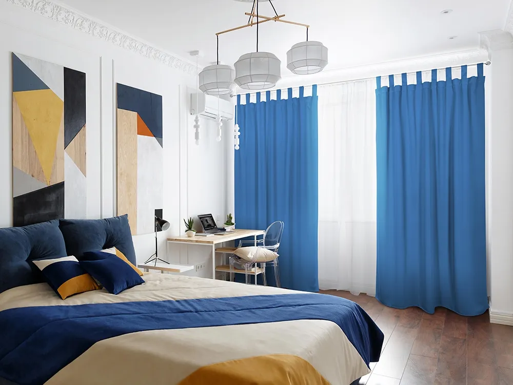 Шторы Премиум синие на петлях без липучек
